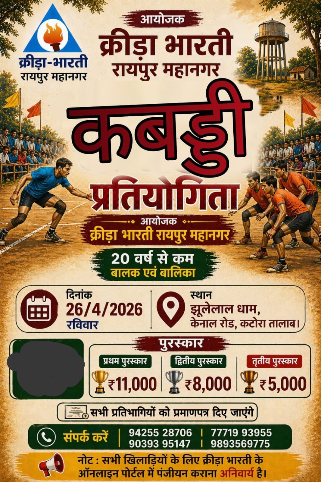 KHELNEWZ MUNGELI DESK छत्तीसगढ़ कबड्डी प्रीमियर लीग का फीवर 16 अप्रैल से होगा शुरू