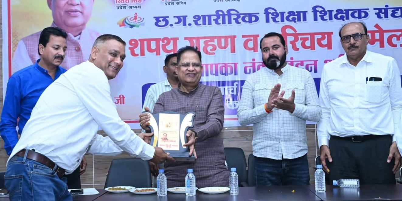 KHELNEWZ BILASPUR DESK छत्तीसगढ़ शारीरिक शिक्षा शिक्षक संघ का शपथ ग्रहण समारोह न्यायधानी में हुआ संपन्न