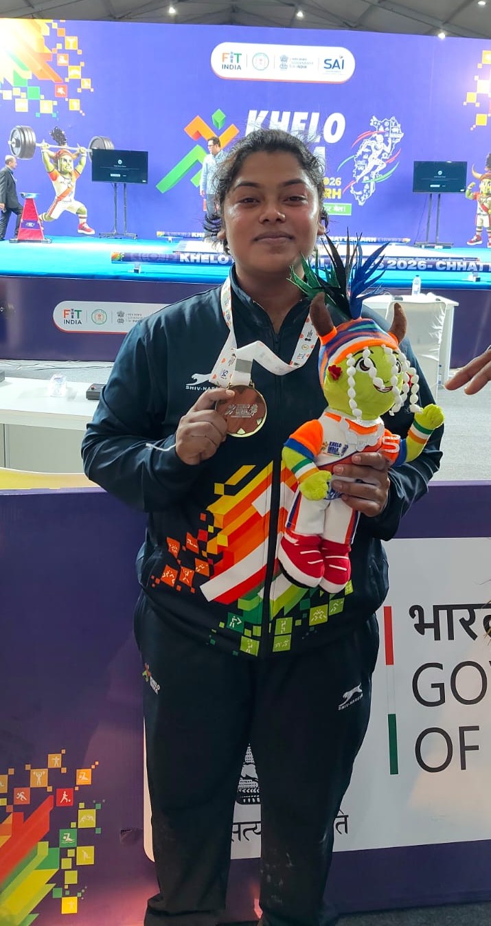 KHELNEWZ RAIPUR DESK खेलो इंडिया ट्राइबल गेम्स के वेटलिफ्टिंग में रिशिका कश्यप ने रजत और लकी बाबू मरकाम ने जीता कांस्य पदक