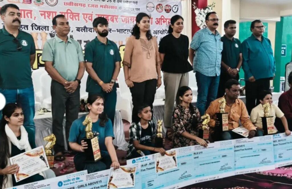 प्रतियोगिता के विजेताओं एवं उप विजेताओं में 15 साल से ऊपर बालिका वर्ग में प्रथम भाग्यश्री पटेल (पलारी) द्वितीय रोशनी साहू (बलौदाबाजार).15 साल नीचे में अदिति पाण्डेय प्रथम (बलौदाबाजार) द्वितीय नित्या वैष्णव (बलौदाबाजार)। इसी तरह से 15 साल से ऊपर बालक वर्ग में प्रथम रुपेश मिश्रा (बिलासपुर) द्वितीय वैभव साहू (भाटापारा), 15 साल से नीचे बालक वर्ग में प्रथम लक्ष्य गुप्ता प्रथम (रायपुर), द्वितीय प्रांजल सिंह (दुर्ग)। सभी प्रथम स्थान पाने वाले खिलाड़ियों को सात – सात हजार का चेक एवं द्वितीय स्थान प्राप्त करने वाले खिलाड़ियों को पांच – पांच हजार का चेक , ट्रॉफी तथा प्रमाण पत्र देकर पुलिस अधीक्षक भावना गुप्ता द्वारा सम्मानित किया गया।