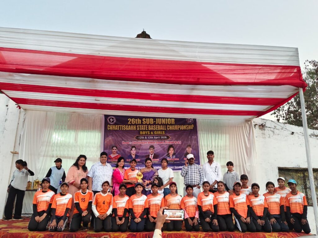26वी सब जूनियर राज्य स्तरीय बेसबॉल प्रतियोगिता बालक/बालिका का आयोजन 12 एवं 13 अप्रैल को छत्तीसगढ़ स्कूल मैदान मे सम्पन्न हुआ. जिसमे प्रदेश के विभिन्न जिलों के खिलाड़ियों ने भाग लिया.आयोजन सचिव अख्तर खान ने बताया कि समापन समारोह में अतिथि के रूप में छत्तीसगढ़ बेसबॉल संघ की प्रदेश अध्यक्ष डॉ पलक जायसवाल, महासचिव सुश्री मिताली घोष, उपाध्यक्ष डॉ कैरोलाइन सत्तूर, कोषाध्यक्ष श्रीमती पूर्णिमा मिश्रा, फाउंडर मेंबर मृत्युंजय शर्मा मौजूद थे।
