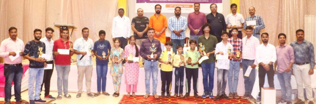 प्रतियोगिता के मुख्य निर्णायक रॉकी देवांगन को हाल ही में विश्व शतरंज महासंघ द्वारा अंतर्राष्ट्रीय निर्णायक की उपाधि दिए जाने पर कम उम्र में इतनी बड़ी सफलता अर्जित करने के लिए उन्हें शाल, श्रीफल एवं मोमेंटो देकर सम्मानित किया गया।एक दिवसीय रैपिड शतरंज टूर्नामेंट में कुल ₹ 30000 की नगद राशि एवं ट्रॉफी विजेता खिलाड़ियों को दी गई।