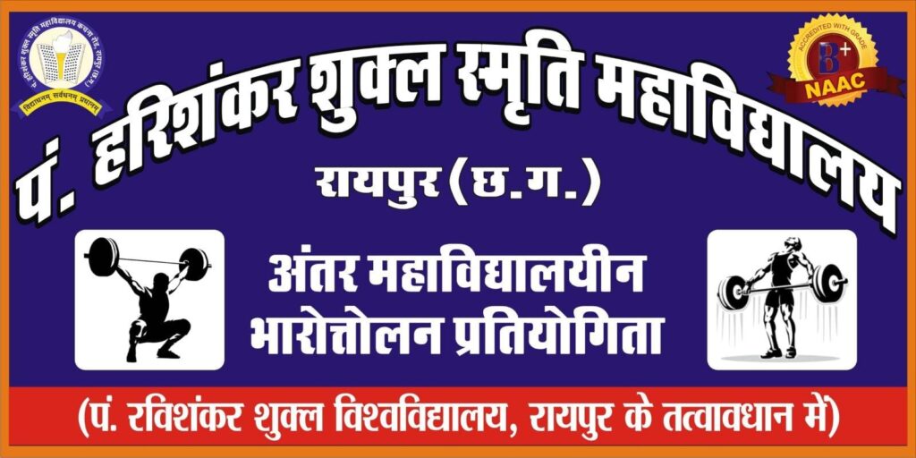 KHELNEWZ RAIPUR DESK इंटर कॉलेज वेटलिफ्टिंग स्पर्धा हरिशंकर शुक्ल कॉलेज की मेज़बानी में 6 नवंबर को होगा आयोजित