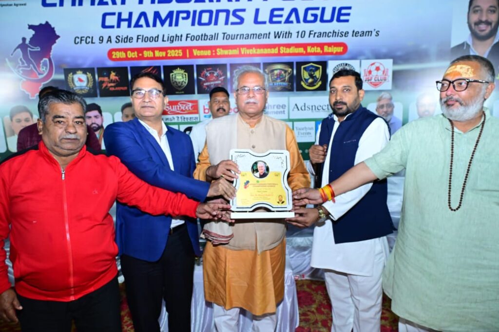 वीर स्पोर्ट्स क्लब के तत्वाधान में स्वामी विवेकानंद स्टेडियम, कोटा रायपुर में आज छत्तीसगढ़ फुटबॉल चैंपियंस लीग (CFCL) के तहत दो रोमांचक मुकाबले खेले गए। क्लब के अध्यक्ष अधिवक्ता प्रवीण जैन ने जानकारी देते हुए बतलाया कि दिन का पहला मुकाबला कलिंगा यूनिवर्सिटी और मेट्स यूनिवर्सिटी के इंटरनेशन छात्रों के मध्य मैत्री मैच खेला गया.