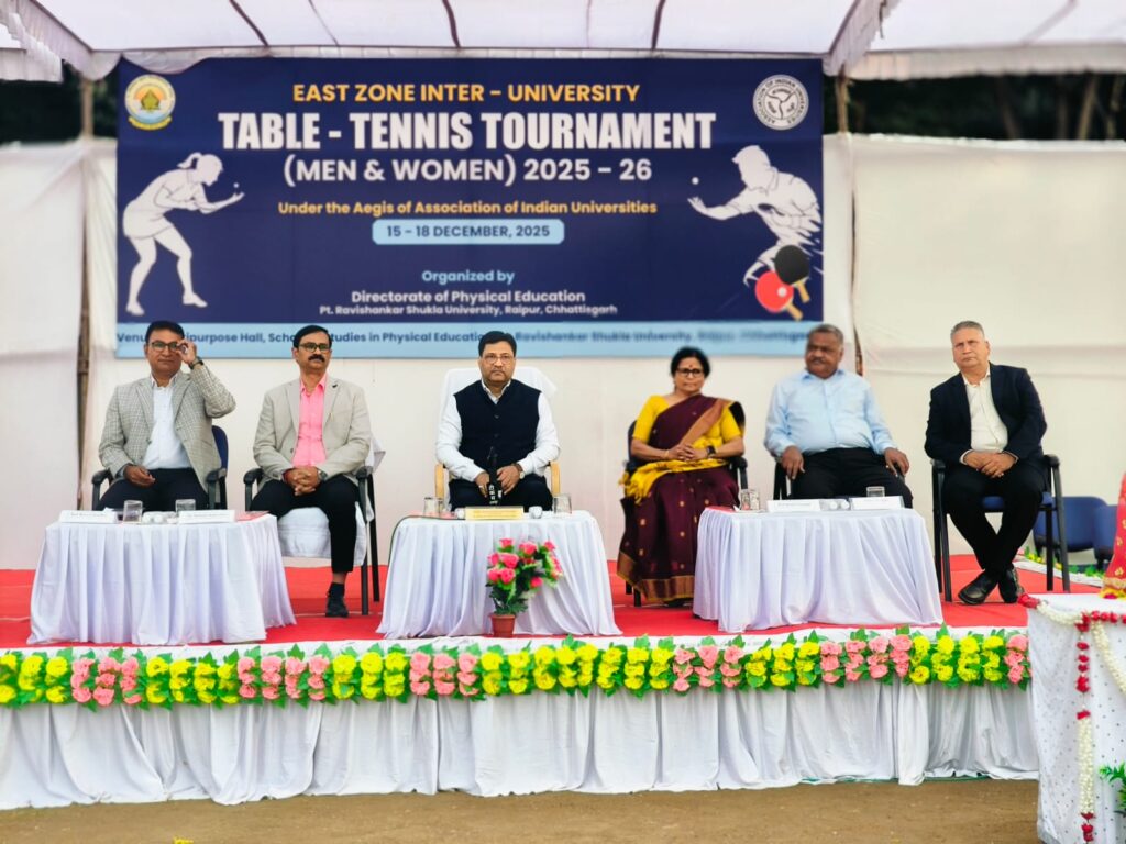 पूर्व क्षेत्र अंतर-विश्वविद्यालय टेबल टेनिस प्रतियोगिता (पुरुष एवं महिला) का उद्घाटन 15 दिसंबर को पं. रविशंकर शुक्ल विश्वविद्यालय में किया गया। इस प्रतियोगिता का आयोजन विश्वविद्यालय के शारीरिक शिक्षा निदेशालय द्वारा अखिल भारतीय विश्वविद्यालय संघ (AIU) के तत्वावधान में किया जा रहा है।