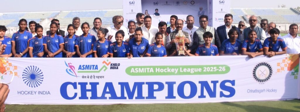उप मुख्यमंत्री श्री अरूण साव आज अंतर्राष्ट्रीय हॉकी स्टेडियम परिसर राजनांदगांव में आयोजित अस्मिता हॉकी लीग प्रतियोगिता में शामिल हुए। इस अवसर पर उन्होंने विजेता टीम को पुरस्कार वितरण किया। उप मुख्यमंत्री श्री साव ने कहा कि अस्मिता हॉकी लीग के प्रशिक्षण एवं प्रतियोगिता के यादगार पल में आने का अवसर मिला। उन्होंने कहा कि हॉकी देश के महत्वपूर्ण खेल विधाओं में शामिल है और हॉकी खेल में देश की बेटियां बढ़-चढ़कर हिस्सा लेकर अंतर्राष्ट्रीय स्तर पर देश का नाम रौशन कर रही है।