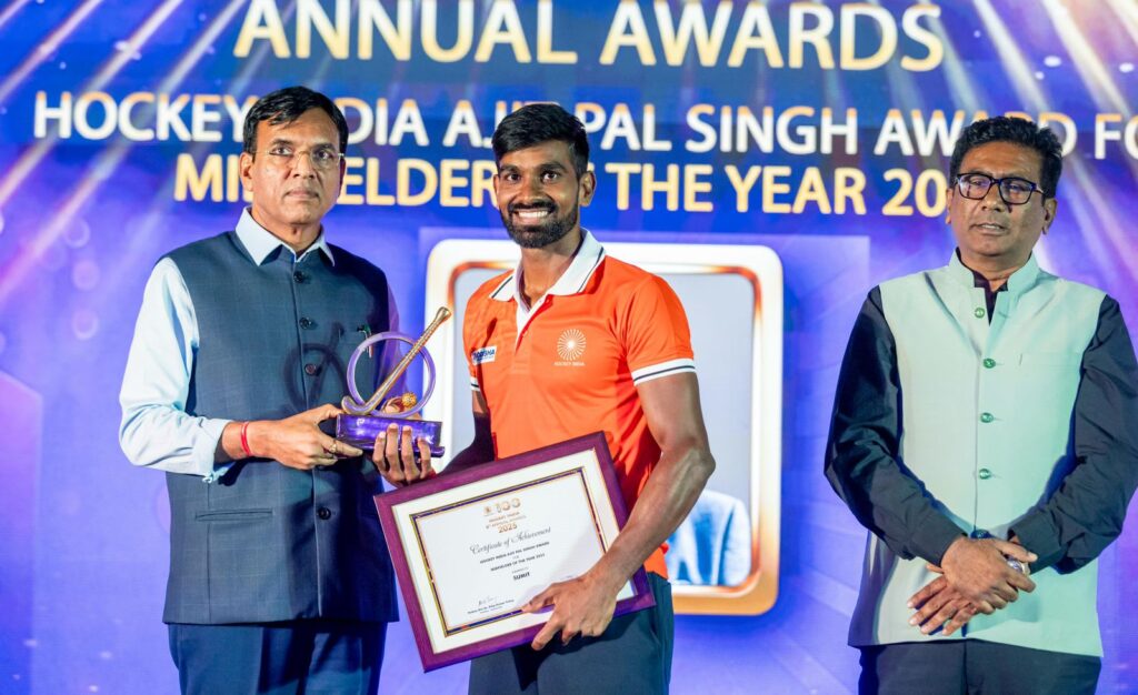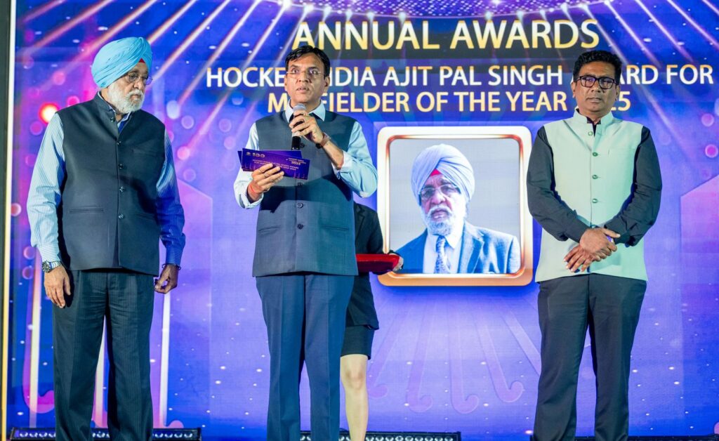 उनके हाथों “अजीत पाल सिंह मिडफील्डर अवार्ड” भारतीय हॉकी टीम के स्टार खिलाड़ी सुमित कुमार को प्रदान किया गया।साथ ही अन्य पुरस्कारों में मेजर ध्यानचंद लाइफ टाइम अचीवमेंट पुरस्कार महान हॉकी खिलाड़ी ज़फ़र इकबाल को, डिफेंडर ऑफ़ द ईयर संजय राणा को, अपकमिंग प्लेयर ऑफ़ द ईयर साक्षी राणा (महिला), प्रिंस दीप सिंह (पुरुष), प्लेयर आफ़ द ईयर नवनीत कौर (महिला), हार्दिक सिह (पुरुष) को प्रदाय किए गए ।